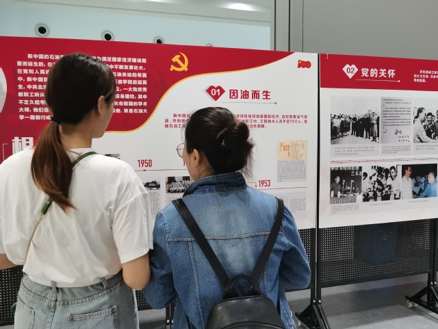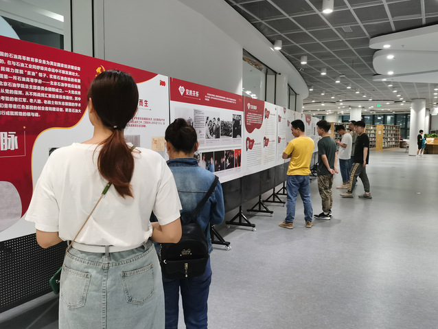 为庆祝中国共产党成立100周年,传承和弘扬“家国同心、艰苦奋斗、惟真惟实、追求卓越”的石大精神,6月24日-27日,公司组织各员工党支部前往图书馆(东馆)观看“庆祝中国共产党成立100周年石大党建图文展”。