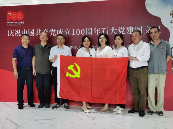 庆祝建党一百周年纪念大会的隆重召开,激发了党员同志们的荣誉感、自豪感、使命感。为了进一步强化党史学习,7月2日,实验教学中心党支部举办了学习党史系列活动,前往公司图书馆新馆参观学习“庆祝中国共产党成立100周年石大党建图文展”。本次活动由党支部书记张淑霞主持,全体党员参加。