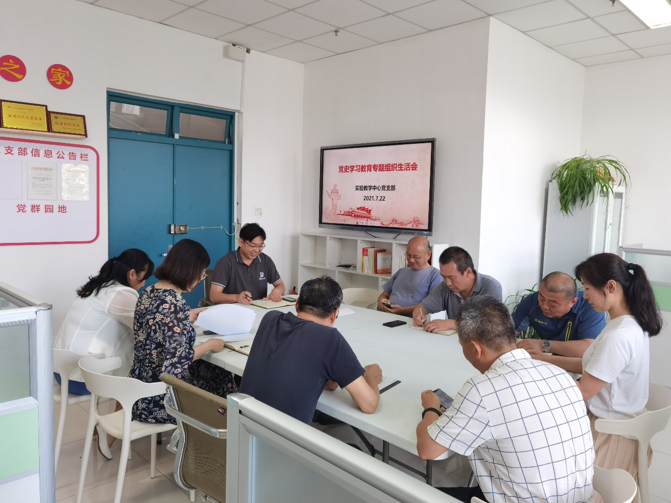 7月22日下午,实验教学中心党支部在工科楼A319召开党史学习教育专题组织生活会,会议由支部书记张淑霞主持,经理助理陈小博老师参会指导。