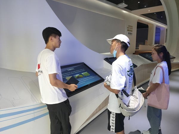 实践队成员首先观看创新中心的宣传视频,大致了解目前海水稻的发展历史,观看结束后,创新中心负责人带领实践队成员参观创新中心,在参观过程中为实践队成员讲解海水稻的发展状况。负责人告诉实践队成员,种植海水稻核心技术手段是四维改良法,第一维是要素物联网系统,利用现在高新技术,在种植过程中实时采集分析数据,进行智能结算,实现精准施肥与浇水,第二维是植物生长调节素系统,针对性地开发肥料,提高水稻的耐碱抗倒伏能力,第三维是土壤定向调理剂系统,调节土壤板结,降低重金属活性,第四维是抗逆性水稻,也就是目前人们熟知的海水稻。创新中心利用四维改良法与华为共建智慧农业,以自主产权的“九天芯”人工智能芯片和创新的农业生态圈平台“后土云”帮助地方农业数字化升级,开拓智慧农业新产业,高质量发展地方经济,助力乡村振兴。负责人还提到海水稻作为农产品的附加值并不高,以后将会把海水稻同旅游观光与科教结合,创造出更大的经济效益。