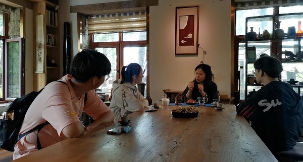 实践队队员正在与当地渔业负责人交流 杨相宜摄影