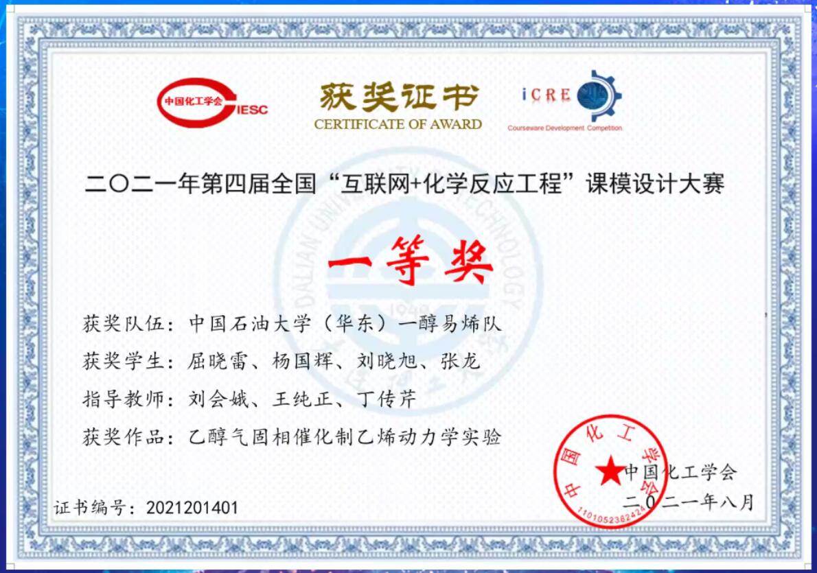 本次比赛经过初审、复审与会审,最终确定了一等奖作品17份,二等奖33项,三等奖57项。来自公司的屈晓雷、杨国辉、刘晓旭、张龙组成的“一醇易烯队”荣获一等奖。参赛队员们纷纷表示,通过比赛,不但加深了对所学专业知识的理解,加强了团队合作精神及创新精神,在不断的改进中持续提升,既锻炼了竞赛技巧,又收获了比赛快乐。