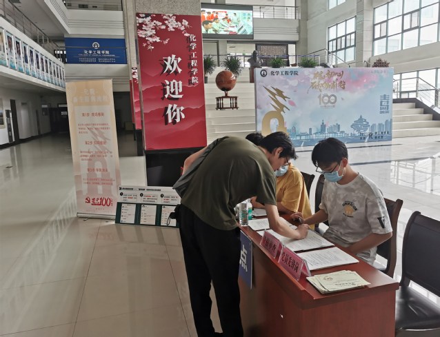 公司以“聚力化院·接续奋斗”为主题布置迎新现场。新生走到工科楼A座东门,迎面看到的是长达8米的欢迎板,“欢迎2021级新生”几个大字让同学们感受到了公司师生的热情。走进工科楼A座,沿着指引牌走入大厅,同学们依次参观 “优秀员工风采展”“优秀研究生集体及个人风采展”“研究生代表成果展”,领略公司优秀学子的风采。在报到点,同学们通过易班迎新扫码报到,取校园卡新生大礼包。最后,同学们在志愿者介绍下参观“光辉的历程”公司文化墙,并在“不忘初心·砥砺前行”主题板前拍摄入学纪念卡。