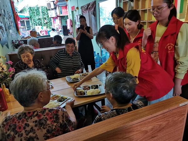 家和万事兴,敬老要先行!敬老,是家和万事兴的基本。古人用诗句“夕阳无限好,人间重晚情”来道出这种境界。想来,的确如此。实践过程中,队员们不但为难以行动的老人们送饭,还时常和青岛星河志愿服务队的常驻叔叔阿姨们共同帮助老人解决生活中的问题、帮助老人们学习智能机的使用等等。