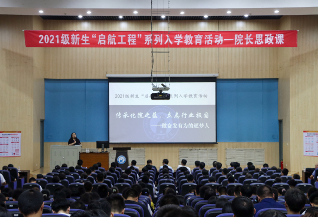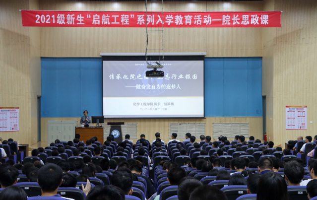9月23日,化学工程公司2021级新生“启航工程”系列入学教育活动“经理思政课”在南教100开讲。公司经理刘欣梅以《传承化院之蕴,立志行业报国》为题,为全体新生讲授大学第一堂思政课。副经理刘义、各系负责人和教师代表以及年级辅导员出席活动。