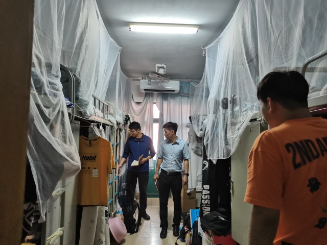 宿舍安全卫生检查过程中发现,大多数宿舍安全卫生状况良好,但男生宿舍卫生情况较差;员工均能遵守宿舍用电准则,未发现使用违规电器等现象。但部分宿舍存在人走未切断电源的情况,部分宿舍阳台堆有书籍、纸盒等易燃物,还有个别员工走后仍继续给充电宝充电,存在安全隐患。针对检查过程中发现的问题,年级工作组对于相关人员进行通报批评,并要求相关人员现场整改。徐光辉叮嘱员工们不仅要保持宿舍卫生整洁,更要增强安全防范意识,严禁出现使用违规电器、私拉电线等违纪行为。