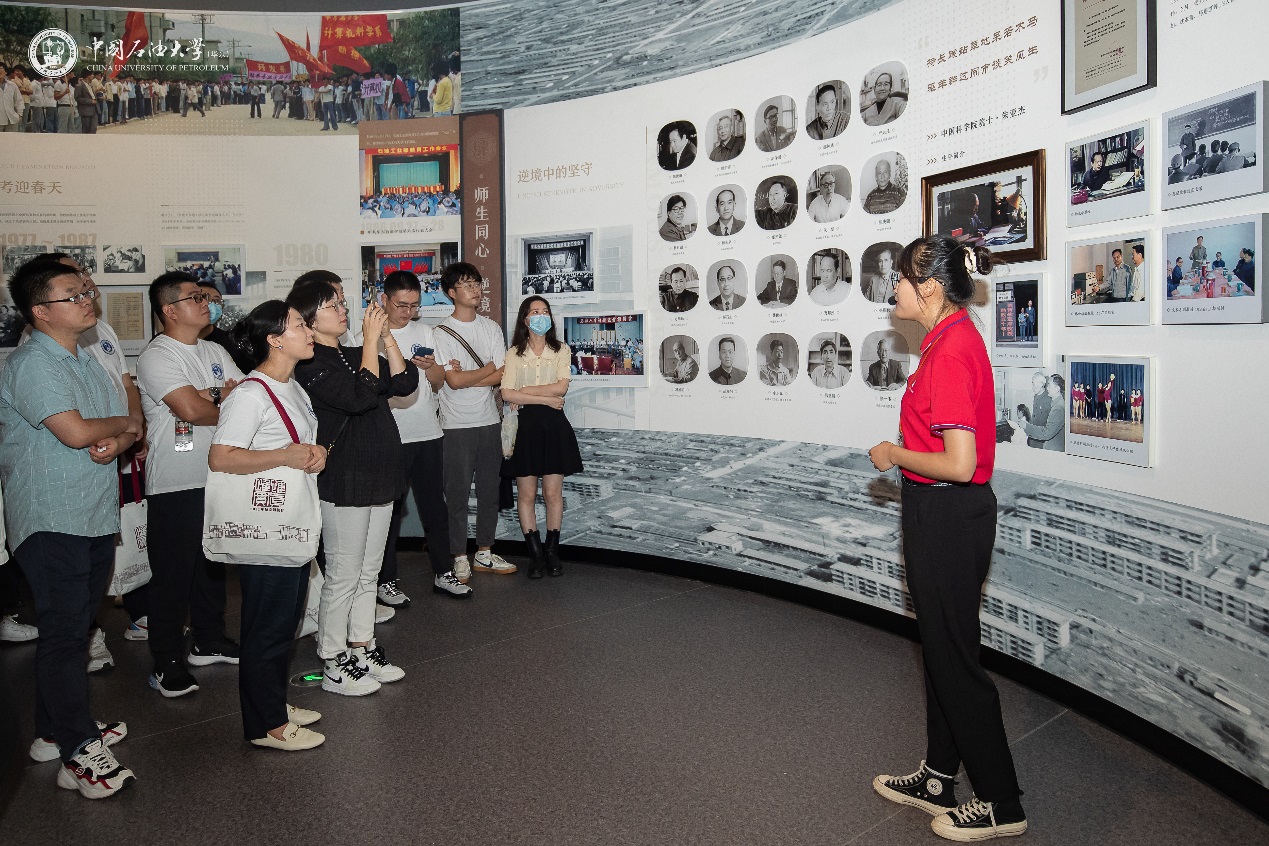 10月2日上午,员工们参加了校史馆开馆仪式,副董事长张玲玲为化工07级等聚会班级授旗。开馆仪式结束后,员工们漫步校园,在创造太阳、图书馆(东馆)、讲堂群、重质油国家重点实验室等多处合影留念,感受青岛校区的新变化和新气象,重温旧时光,分享新故事。下午,在讲解员的带领下,员工们参观了新校史馆。回顾公司的发展历史和沧桑巨变,感悟“家国同心、艰苦奋斗、惟真惟实、追求卓越”的石大精神,大家纷纷称赞校史馆的宏伟建设和艺术效果,表示今后将传承石大精神,在各自工作岗位上为国家和母校发展做出自己的贡献。那年相遇,十年相聚,员工们在毕业十周年签到墙上签名并合影留念。
