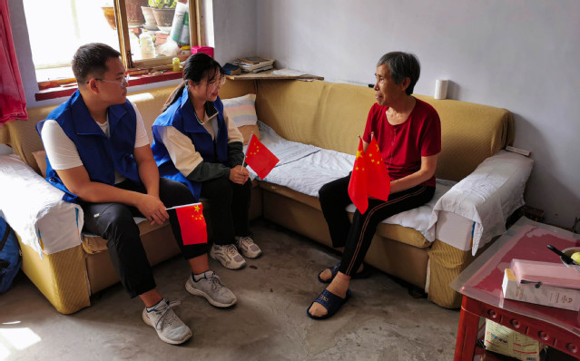 志愿者们最后来到王秀敏老人的家,采访她对童年时的祖国有哪些印象时,从王秀敏老人对60年代回忆中,志愿者了解到那时候日子很苦,人们饭都吃不上,有时候去捡秋天落下来的杨树叶,用开水煮一煮和上面之后就是一顿饭。接着王秀敏老人满怀激动与自豪向我们介绍祖国这几十年来翻天覆地的变化:“之前家里有个电视机就值得炫耀,现在电视屏幕越来越大。2020年祖国还实现了全面脱贫,山区里也建起了小洋楼、修好了水泥路。我们的小家也跟着祖国的大家越来越好,过上幸福的生活。”谈起祖国的变化时,王秀敏老人脸上始终洋溢着笑容。采访最后,王秀敏老人说出了对祖国的心里话:“生在中国,我感到幸福、感到自豪,祝祖国母亲生日快乐!”
