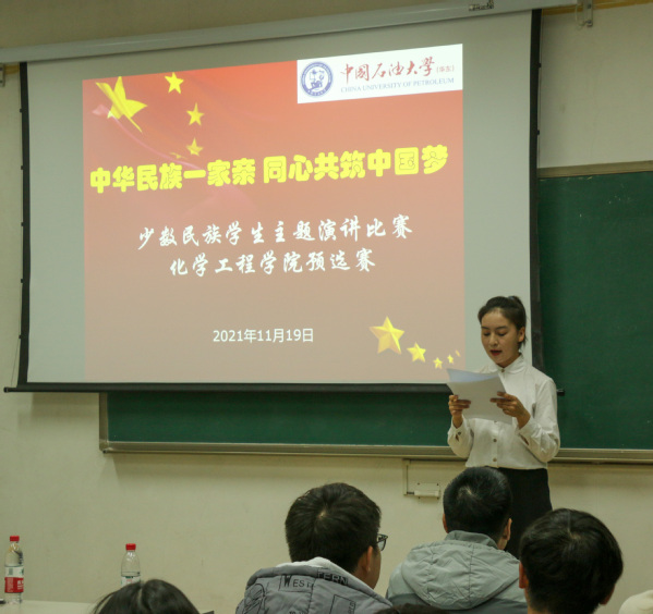 团结奋斗共进步,繁荣发展同前行。为展示少数民族员工良好的精神风貌,培养员工中华民族共同体意识,11月19日,由化学工程公司主办的“中华民族一家亲,同心共筑中国梦”演讲比赛在南堂103教室举行。学工处副处级辅导员米娜瓦尔、公司党委副书记徐光辉、内派老师热阳古以及各年级辅导员、员工代表担任评委,公司少数民族员工参与比赛。