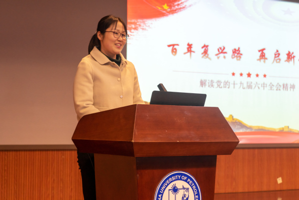 11月23日,化学工程公司在逸夫礼堂举办学习会,邀请马克思主义公司副经理宋海儆副教授以《百年复兴路 再启新征程》为题深入解读了党的十九届六中全会精神,为百余名师生党员代表带来了一趟生动、深刻的党课。
