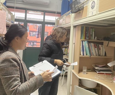 为了解公司少数民族员工的生活、学习情况,加强2020级员工宿舍卫生、安全管理,营造良好的宿舍氛围,11月26日下午,内派老师热阳和2020级辅导员栾琳古开展了宿舍卫生、安全检查工作,对2020级宿舍及全院少数民族员工宿舍进行了全覆盖检查。本次卫生检查中发现,男生部分宿舍存在东西杂乱、空气质量差等问题,需进一步整改;女生宿舍卫生状况情况较好,个别宿舍存在桌面东西多、床上悬挂衣物、使用床帘等问题。本次检查未发现使用、存放违章电器等现象,但个别宿舍仍存在人走未断电的现象。针对检查过程中发现的问题,栾琳第一时间对相关人员进行了批评教育,同时要求宿舍长加强监督。检查过程中,栾琳还询问员工考试复习情况,鼓励同学们抓紧时间认真备考,同时告诫同学诚信考试。热阳古与少数民族员工热情交流,询问员工生活和学习方面有无困难,鼓励同学积极参与班级和公司安排的各项集体活动,展现自我、全面发展。