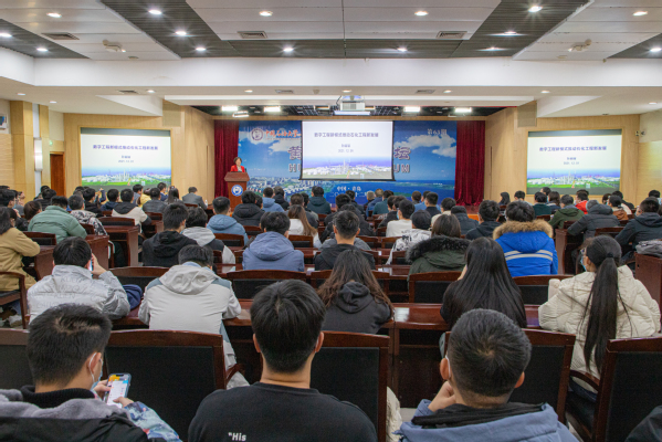 随后,孙丽丽作为黄岛论坛第63期嘉宾,在逸夫报告厅作了题为“数字工程的新模式推动石化工程新发展”的报告。她从建立数字工程体系与平台讲到创新数字化石化工程新模式,用幽默风趣的语言和生动形象的例子将新模式构建的过程呈现给了师生。她指出,在过去的时间里,现代信息技术科技工作者们建立了数字工程平台,并基于这些研究,构建出了数字工程的新模式。她表示,一项新技术的建立并不意味着新技术能够成功地应用在生产当中,但在不断的实践过程中,数字工程的表现十分出色。孙丽丽通过多个案例从不同的方向上讲解了数字工程在生产中的杰出表现,并结合十余年来的经验,展望了数字工程的未来发展方向。报告结束后,孙丽丽对师生的提问一一进行解答。