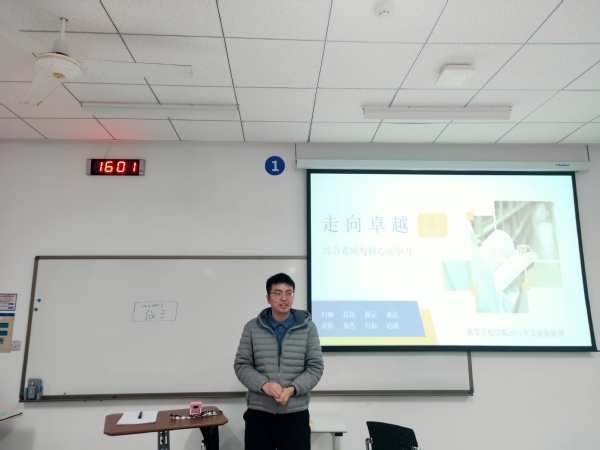 为培养化学工程公司本科生答辩与面试技巧,加强自我管理能力和组织管理能力,12月10日,公司本科生素拓培训班开班仪式暨第一课在综合实验楼A座409举行。公司2021级辅导员窦雅琴、2019级辅导员王兆兴及素拓班全体成员参加此次活动。