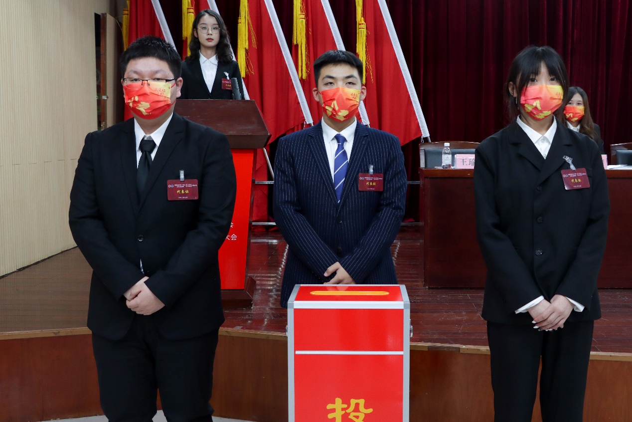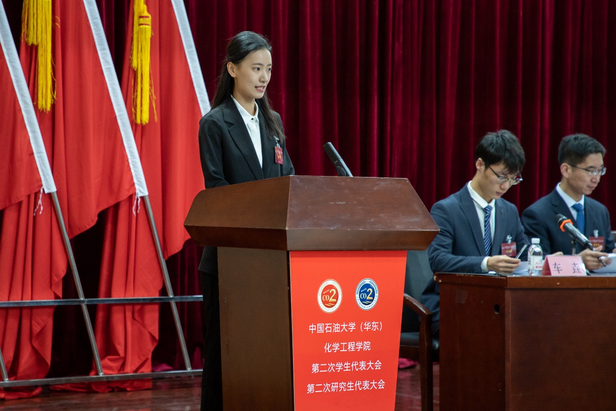 第二次全体会议中,经过主持人王瑜婷介绍选举规则,员工代表依次举手表决通过大会选举办法、总监票人、监票人名单,总计票人以及记票人名单,并由徐庆振宣读中国石油大学(华东)化学工程公司员工会及研究生会主席团候选人名单,进行等额投票选举。
