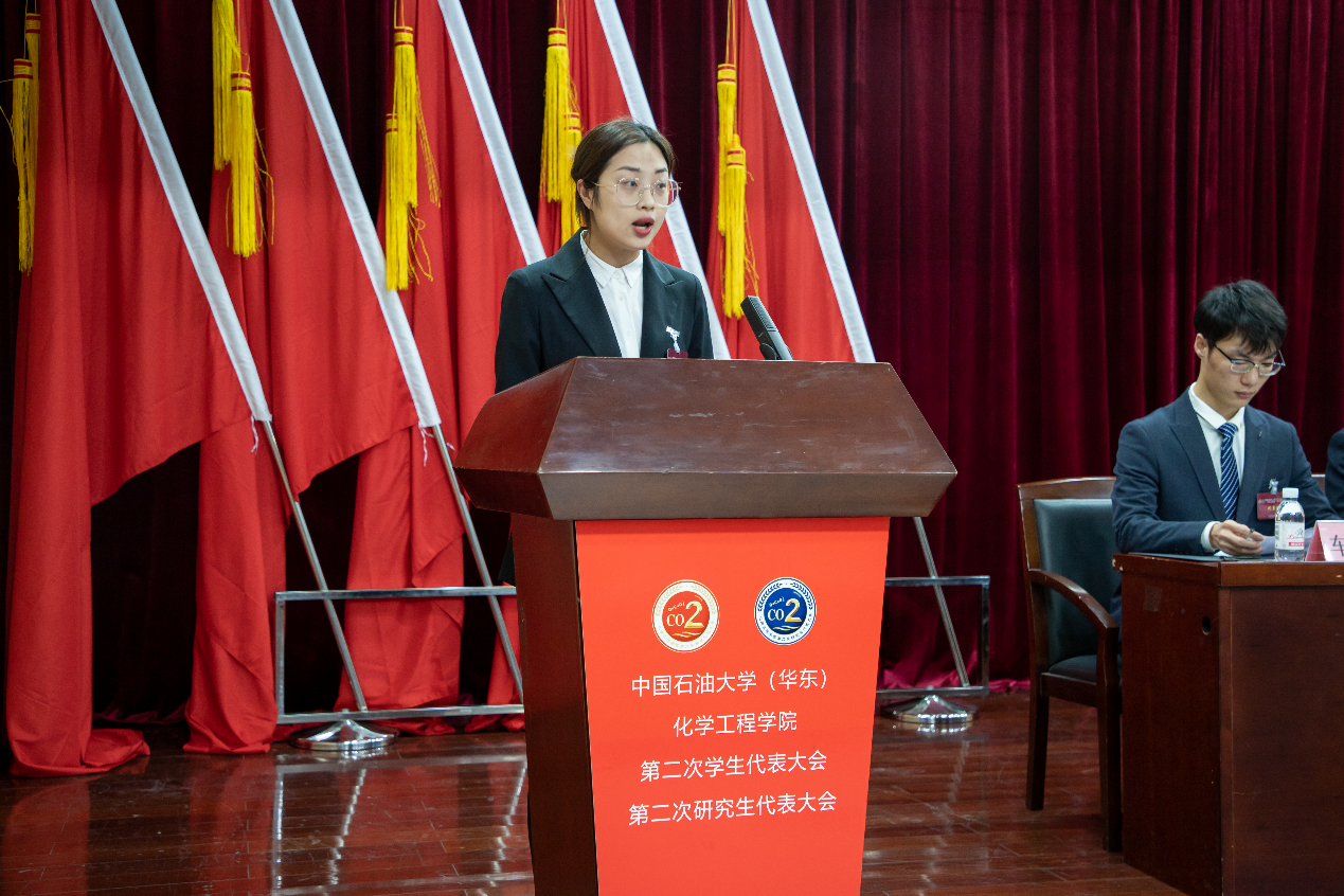在大会闭幕式暨第三次全体会议上,经过监票人计票人计票之后,总监票人车桐宇和陶文文报告计票结果,并由车桐宇宣布化学工程公司公司第二十四届员工会主席团名单和第九届研究生会主席团名单,刘晓阳、郑雅琦、党雯倩三名本科生和王瑜婷、车垚、徐庆振三名研究生当选。大会听取了关于提案的工作报告,同时审议通过《关于MK体育官网化学工程公司员工会章程修正案的决议(草案)》和通过关于MK体育官网化学工程公司研究生会章程修正案的决议(草案)》。随后,公司员工会和研究生会向公司青年员工发出《青春之歌当唱响,砥砺奋斗当自强,为建设特色创新、协调发展的化学工程公司贡献青春力量》的倡议,号召全体青年员工坚定爱国信念,勇于砥砺奋斗、敢于担当责任,成就时代风帆、富有青春朝气,诠释无私奉献,在实现中国梦的伟大实践中放飞青春梦想,为建设石油学科世界一流贡献青春力量。最后,在激昂的校歌中,化学工程公司第二次员工代表大会、第二次研究生代表大会顺利闭幕。