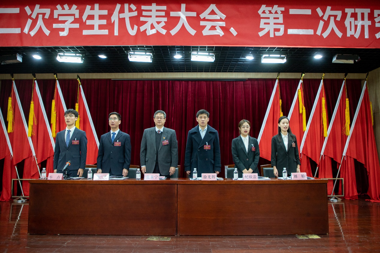 为确保大会顺利进行,根据会议工作安排,员工会和研究生会于开幕式前召开各代表团会议和大会预备会议,各代表团代表审议主席团名单(草案)、大会议程(草案)和代表资格审查报告(草案),讨论了大会选举办法(草案)等相关内容。全体代表听取大会筹备情况报告,审议通过代表资格审查报告,通过大会主席团成员和大会秘书长、副秘书长名单并审议通过大会议程。