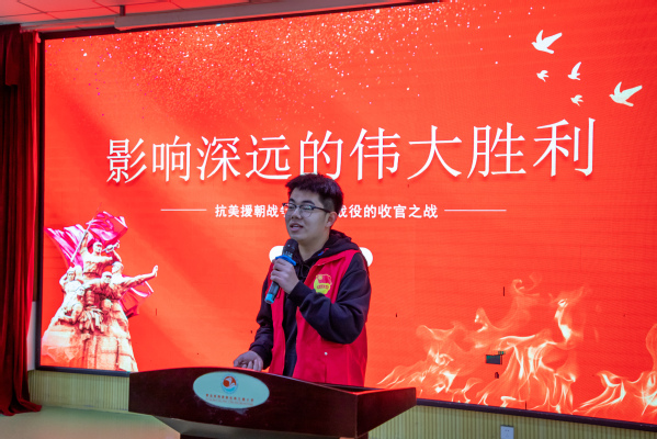 活动伊始,薛尚知宣布开展此次活动的背景以及活动的流程安排。随后,志愿者分别从战役简介、战役经过、战役意义对长津湖战役进行了讲解,志愿者以视频的方式将长津湖战役发生的时间以及背景展示给员工,通过红色洪流、严密伪装、步履维艰和“冰雕连”四部分,逐一详细讲解了战役的经过,让员工逐步了解战役是怎样一步步地走向胜利。紧接着,志愿者讲解了长津湖战役获胜后的深远影响,强调了该战役的获胜扭转了整个战争的走向,为中国人民志愿军打赢最终的胜利奠定了坚实的基础。最后,志愿者结合真实的影片资料,通过简单的互动问题讲解了伟大的抗美援朝精神并呼吁年轻一代应当倡导发扬。活动结束,志愿者颜彩玉说到:“孩子们很认真的在听,并且十分积极。党史应从小了解,不仅是对于革命先烈的缅怀更是为孩子们在心里树立正确的价值观,深刻体会国家强大过程中的所有人的坚持与奉献,牢固爱国主义精神。”
