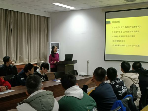 会议伊始,班长带领同学认真学习《员工手册》中的员工考试工作管理规定、员工纪律处分规定等相关内容,使其对考场规则和作弊会引发的后果都有了一个清楚的认识,同学们也积极发表了自己的想法,对如何做到诚信考试发表自己的看法和意见。紧接着,班长下发《考试诚信承诺书》,同学们认真阅读了承诺书中的文字,郑重做出承诺并签上姓名。最后,班主任再次强调了诚信考试的重要性,并针对学期末如何备考给出了建议。
