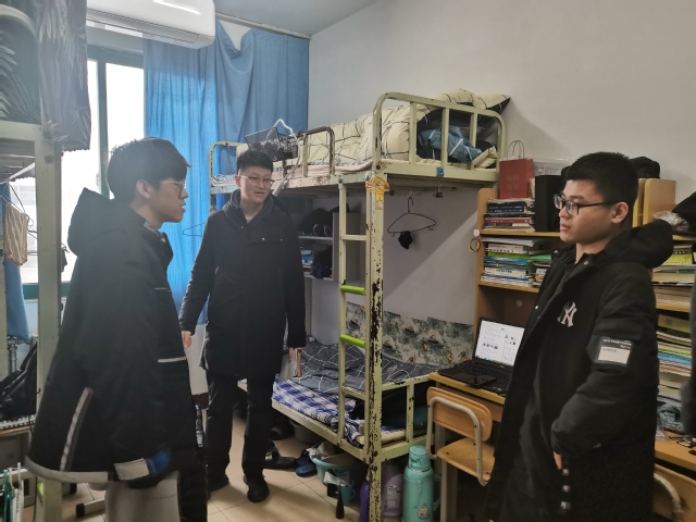 班干部见面会于当天下午在工科楼A座215举行,会议由2018级辅导员刘伟主持,化学1801、化学1802班长支书参加会议。会议伊始,刘伟对化学专业的归来表示热烈欢迎,并简单地进行了自我介绍以及年级情况介绍。紧接着,他分别就党团班级建设、安全、学风、升学就业以及特殊群体等几个方面与化学专业的班干部进行交流。同学见面会由刘伟带领年级员工工作组走访寝室的形式开展,走访期间,他向化学专业员工们介绍了公司的浓厚的学习氛围、丰富的科研竞赛机会以及优秀的指导教师等情况,希望同学们能够在新的平台里继续发光发热。交谈过程中,刘伟还对宿舍安全卫生、寒假离返校流程等进行了强调,要求员工们严格落实好公司的相关规定政策,平平安安回家。