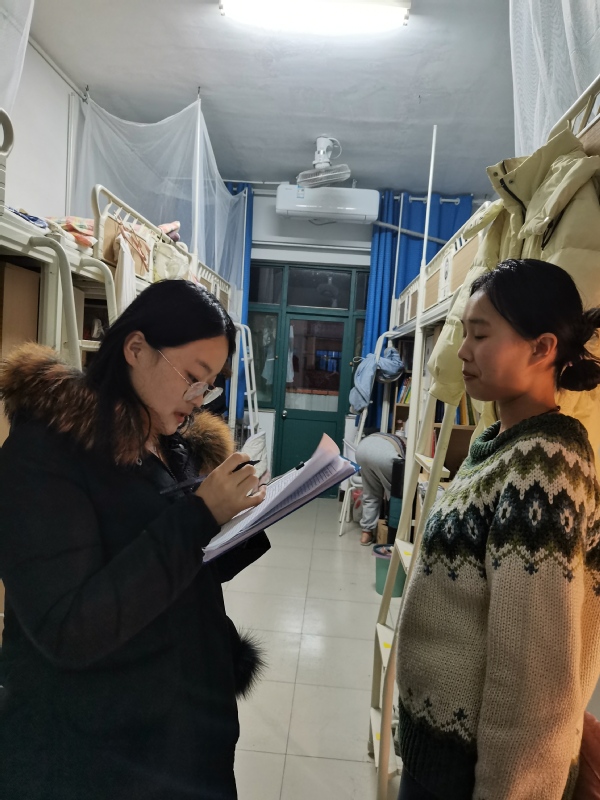 辅导员们逐一走访宿舍,并核对离校员工情况。在检查过程中,重点检查离校员工宿舍门窗是否锁好,电源是否关闭等情况。辅导员们与尚未离校员工进行了亲切交谈,叮嘱员工们在离校前做好宿舍卫生、关好宿舍门窗、切断宿舍电源,在返乡途中注意安全,做好个人防护,并叮嘱员工们寒假期间严格遵守所在地区的疫情防控管理要求,珍惜假期时光,加强学习和身体锻炼,做到防疫和学习两不误。