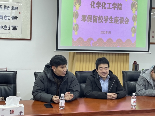 会上,老师们详细了解员工的学习和生活情况,询问他们的留校原因及需求,希望员工们注意科学防控,合理安排时间,过一个充实的假期。副经理胡涵表达了对同学们的亲切慰问,希望留校员工充分利用在校时间好好学习,做好科研工作,同时提醒大家一定要注意实验室安全,做好自身防护。他表示公司将切实解决同学们的实际困难,让大家在公司住着安心、舒心、开心,并祝愿同学们能在公司度过一个平安、愉快而充实的春节假期。公司党委副书记徐光辉叮嘱同学们假期留校要注意实验室安全、宿舍安全和人身安全,常和家人、老师、同学联系,出现问题及时和辅导员老师沟通,学会身心调节,合理安排假期。