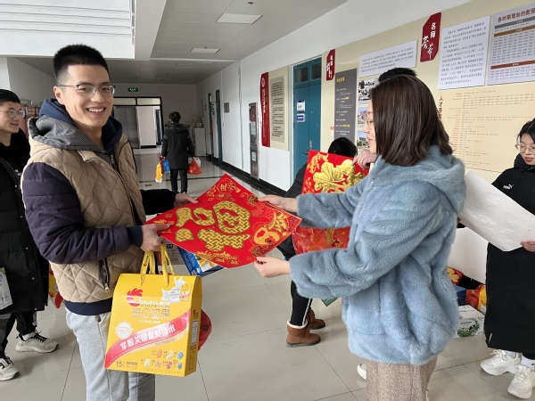 同学们对公司领导的看望表示感谢,并承诺将严格遵守公司相关管理要求。来自新疆的2019级博士研究生安波表示:“这已不是我第一次留校过年,每年公司都会以各种形式看望慰问留校员工。虽然不能回家和家人团聚,但是公司有同学、有老师,我依旧能感受到了家的温暖。今天老师们询问我们情况以及有什么困难,并且给我们送来了节日礼物,让我们感受到了公司的关爱,缓解了我们的思念家乡、思念亲人之情。”