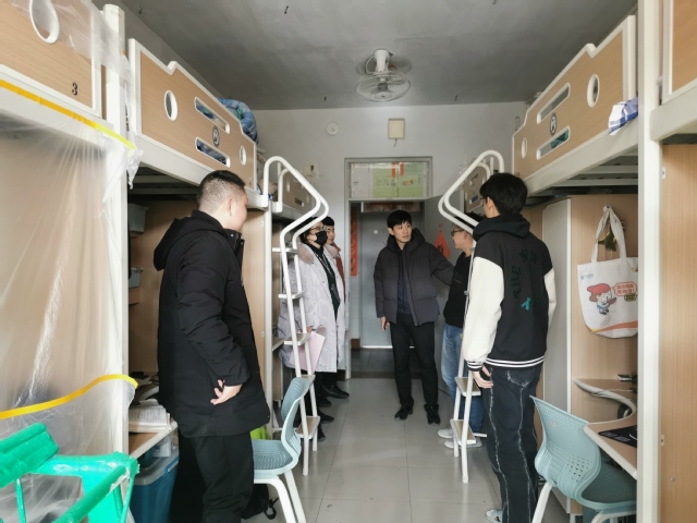 万云波一行来到13号公寓楼3楼,与公司2021级应用化学专业返校员工亲切交流,送上新年的祝福,并鼓励员工做好开学准备迎接新学期。徐光辉同辅导员一起走访员工宿舍、慰问返校员工,了解了员工寒假以及返校过程中遇到的问题,希望同学们尽快调整状态投入到新学期的学习生活中。各年级辅导员对员工宿舍的安全卫生进行检查,对发现问题提出了整改意见。
