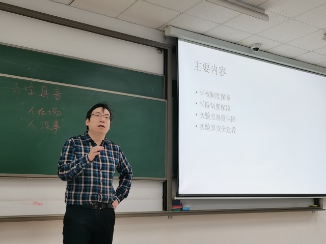 会议伊始,陈坤就总结的实验室“人在场,人没事”六字真言向员工们提出安全要求,要求同学们具有一定面对重大危险事故时的紧急逃生救灾知识以及要把生命放在第一位的思想理念。接下来,他以全国高校实验室近几年所发生的重大实验室安全事故为警示案例,向同学们讲解了事故的发生原因,以及如何避免事故的发生。会后,李宏毅同学感慨道:“本次安全培训中的很多实验室案例警示我们要按照规章制度操作,我们也一定牢牢记住实验室操作要求和老师的嘱托,顺利完成本次毕业设计。”