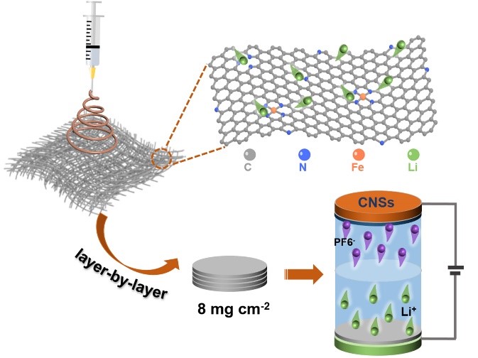 电化学能源存储是实现“双碳”目标的关键技术,而高性能电极材料是该技术的核心。近日,公司科研团队创制了一种过渡金属单原子修饰自支撑纳米纤维膜一体化电极结构,该结构表现出优异的电化学储锂特性;相对于目前广泛使用的石墨电极,过渡金属单原子修饰策略可有效调控电极材料的区域电子结构,提供高度可调的锂离子亲和力以及锂离子传输路径,大幅提升电化学性能。一体化电极设计避免了粘结剂以及导电添加剂的使用,容易实现高活性物质载量;此外,纤维膜的优异机械特性赋予了这类材料构筑可穿戴以及柔性储能器件的可能性。