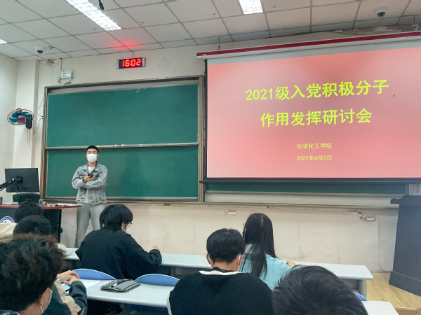 研讨会伊始,李宇航下发《入党积极分子自我评估表》,以党内优秀同志经历为例,就党员发展培养的政治标准、个人优秀以及作用发挥三方面进行了强调,总结了入党积极分子所应承担的责任与应尽的义务,他表示,入党积极分子需要有较高的政治觉悟以及政治意识,特别是现今疫情特殊时期,积极分子更应以身作则,严格遵守疫情防控管理规定,帮助班级困难同学,协助班委做好班级管理,发现问题及时反应。随后,入党积极分子就党的基础知识及十九届六中全会相关知识等50道题目进行了作答。会议最后,各班分组进行讨论,就每位入党积极分子在班级内部的作用发挥进行了具体的分工,为后续班级工作的稳步开展打下了基础。