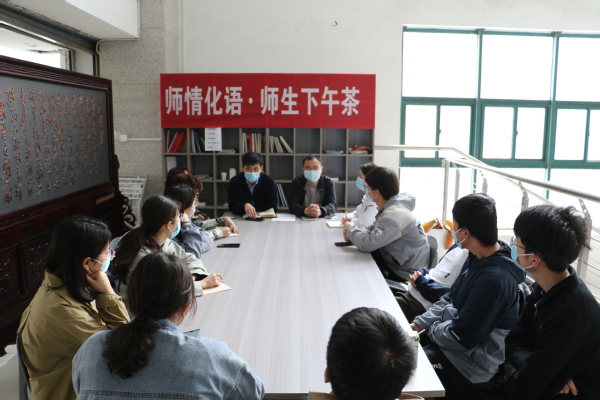 4月22日下午,MK体育于工科楼A座青年之家举办“师情化语·师生下午茶”第五期活动。应化系主任李鹏、公司党委副书记徐光辉和应用化学专业员工代表围桌座谈,在就业前景、考研方向等方面展开进行解疑与交流。