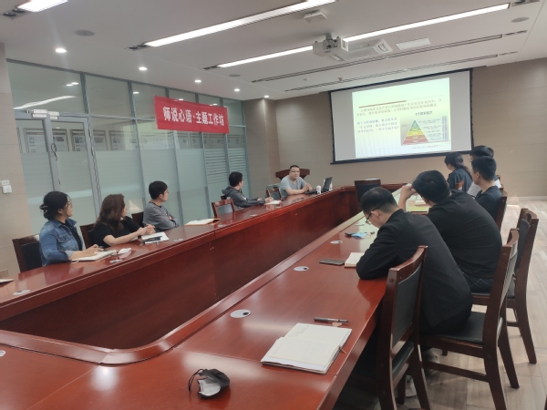 5月19日下午,公司第一期“师说心语·主题工作坊”在重油报告厅举行,公司心理健康中心副主任韩旭东老师主讲,辅导员、班主任、班导师代表参与此次活动。