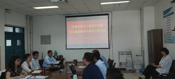 6月17日下午,环境与安全工程系党支部在617会议室开展了“党风廉政教育”专题学习活动暨期末教学总结与实验室安全会议。会议由党支部书记刘芳主持,环境与安全工程系全体老师参加会议。