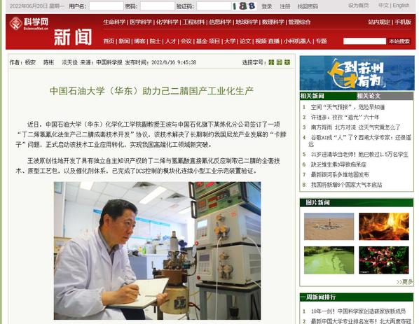 近日,MK体育副教授王波与中国石化旗下某炼化分公司签订了一项“丁二烯氢氰化法生产己二腈成套技术开发”协议,该技术解决了长期制约我国尼龙产业发展的“卡脖子”问题,正式启动该技术工业应用转化,实现我国高端化工领域新突破。