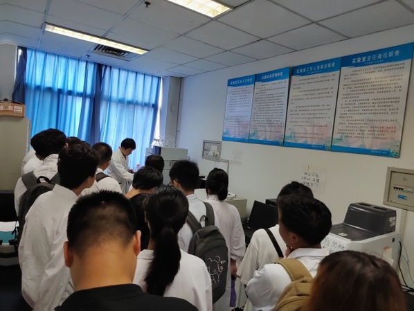 为了保证较好的参观学习体验,党支部提前规划好路线,进行了错时参观。各队老师先带领员工参观了环境微生物、生物修复、环境催化、环境材料、水污染控制、环境分析等科研实验室。在科研实验室,分别由博士生、硕士生对各个科研团队的科研方向、实验室进行的项目研究、实验仪器原理和操作等进行了详细讲解。员工们对各种专业设备和精密仪器充满了好奇,并积极地向学长学姐提问,与带队老师进行交流学习。科研实验室的参观,帮助大一员工对环境与安全工程系的科研方向有了大体了解,也为本科生对大创项目的申请有积极促进作用。