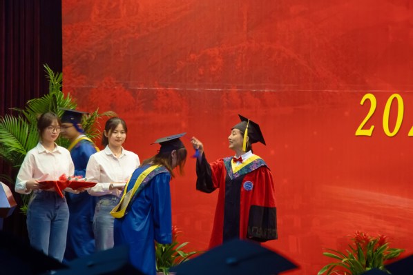 仪式由刘东教授主持。在全体起立奏唱国歌后,刘欣梅经理致辞,她代表公司向全体毕业生表示热烈祝贺,并向辛勤付出的老师、家长和亲友表达衷心的感谢和崇高的敬意。面对即将启程的毕业生,刘欣梅经理以三点嘱托作为对毕业生最衷心的祝福:一是笃行不怠,矢志拼搏,做人生的奋进者。希望大家不断提高与时代发展和事业要求相适应的素质和能力,坚持学以致用,努力成为可堪大用、能担重任的栋梁之材。二是修身明德,同心向前,做社会的奋进者。希望大家自觉树立和践行社会主义核心价值观,加强道德修养,明辨是非曲直,增强自我定力,矢志追求更有高度、更有境界、更有品位的人生。三是家国同心,胸怀天下,做时代的奋进者。希望大家在服务国家社会中成大业,将“小我”融入“大我”之中,肩负起时代赋予的历史使命,书写无悔于时代的青春篇章。“此去山高水长,不要怕什么来不及,也不要怕什么到不了,我们相信,只要不断前进,道路就会不断延伸。”刘欣梅经理悉心叮嘱道:“无论你去往何方,化院都将守望着你们,化院永远是你们的家,有空常回家看看。”