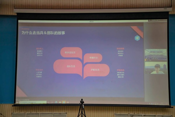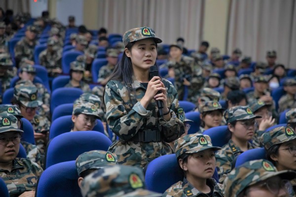 宋玺通过展示部队中的照片,从新兵连生活、考核外训、连对生活、护航生活四方面讲述了自己在部队的故事,她特别强调,在部队的四个阶段都给予了我不同的能力提升,新兵连生活磨练了血性,考核外训让我学会了坚持和担当,连队生活磨砺了我的意志,护航生活让我有了勇敢无畏的品质。宋玺对参训员工关心的参军体悟以及参军动机进行了解答,特别是对“当兵后悔两年,不当兵后悔一辈子”分享了自己的感悟,她表示,在部队的两年经历是我人生中浓墨重彩的一笔,他锻炼了我的意志,提升了我的能力,军旅生活没有后悔,只有遗憾,包括生活,只有将后悔转化为遗憾,生活才能充实快乐。