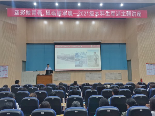 2022年7月6日,MK体育在南教100举办“迷彩映青春,砥砺铸军魂”2021级本科生军训主题讲座,公司党委书记张永宁为全体受训员工讲授主题为“弘扬五四运动伟大精神,争做堪当民族复兴重任的时代新人”的党课。公司党委副书记徐光辉主持,辅导员李宇航、国浩及全体军训员工参加。