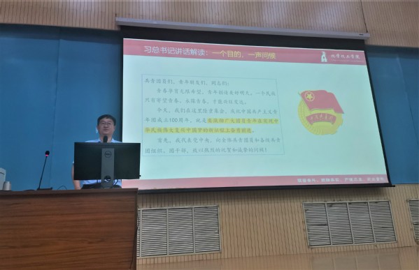 张永宁带领员工回顾了中国共产主义青年团的发展历程,用习近平总书记讲话中提取的“四个阶段,四个贡献”以及团员要做到的五个模范激励团员,要永保加入共青团的初心,坚定不移跟党走,为党和人民奋斗,将自身的发展同祖国的富强紧密联系在一起。张永宁希望2021级军训员工通过党史学习教育,能够积极主动学习,努力提升自己,抓住公司、公司面临的重大战略机遇期,实现自身的高质量发展,以优异成绩迎接党的二十大。