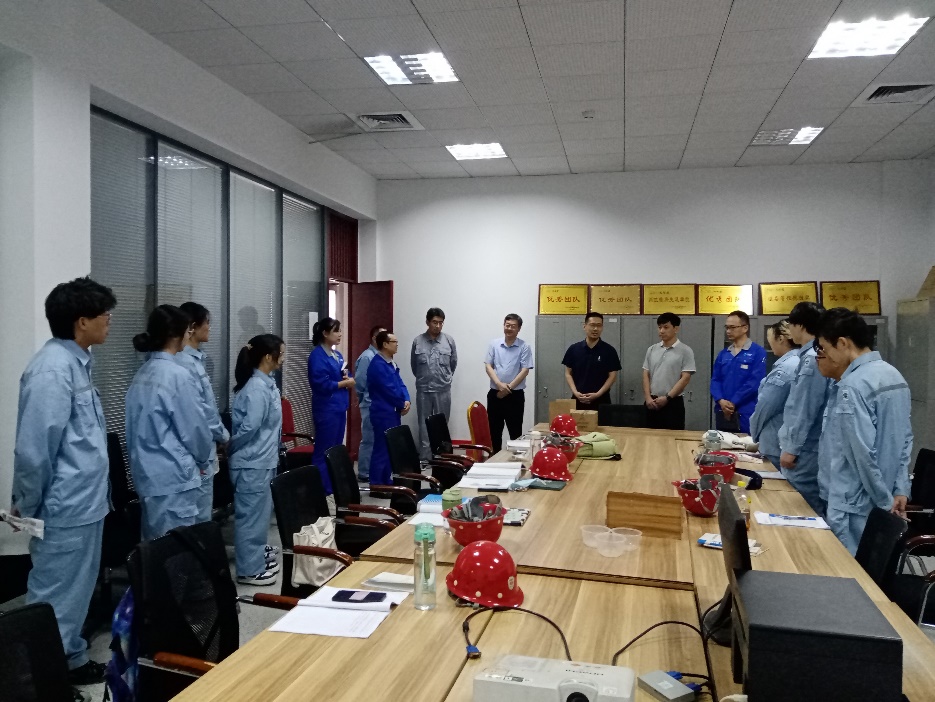 在汇丰石化,张书记一行与正在进行生产实习的2019级化学专业同学进行了座谈和交流,详细了解了同学们在住宿饮食、理论学习、现场实践等方面的具体情况,并希望同学们珍惜机会、服从管理、注意安全、满载而归,鼓励同学们做好理论与实践相结合、公司与公司相结合,为今后工作做好知识储备,积累宝贵经验。汇丰集团总工程师王瑞旭、汇丰石化公司总经理张田心与张书记一行进行座谈,双方就产学研深度融合发展进行深入交流。