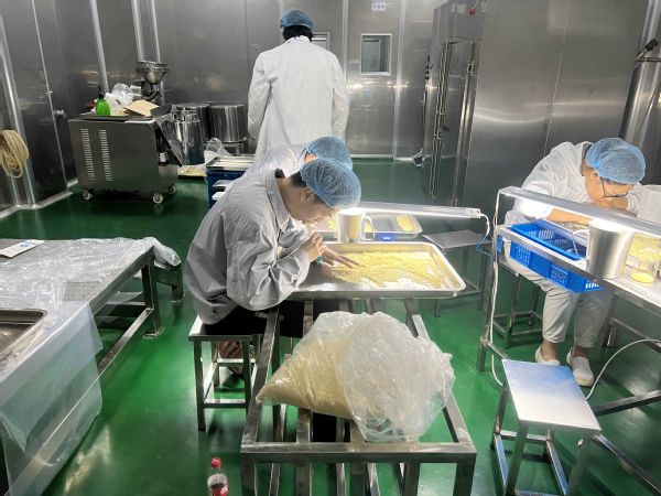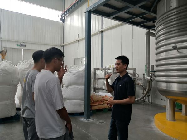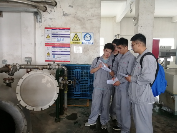 公司工厂共六个车间,43名员工分为6组轮换实习,以确保每个员工都能对生产流程有整体的了解。员工自7月1日起在发酵一、发酵二、益生菌、品控、包装、提取六个车间进行实习。在发酵一,发酵二车间,员工了解并熟悉了发酵管路及其发酵设备的原理和作用;益生菌车间主要学习益生菌饮品的制作过程;品控车间用于酶活的检测;通过在提取车间的实习,员工掌握了从发酵液中提取出需要的料液的过程。在实习开始前,车间主任向员工一一介绍了车间运行基本情况和各设备的基本原理,车间班长则带领员工参观车间,在参观过程中,员工如果有问题时也会及时请教,车间班长耐心解答,营造了积极的讨论氛围。整个实习过程中,车间的闷热和工艺流程的复杂并没有减弱能化专业员工的学习热情,他们积极努力,对各个车间管路和器械的原理和作用产生了更深入的认识和思考,同时,员工们积极动手,对劳作的不易和艰辛有了深切的体会。