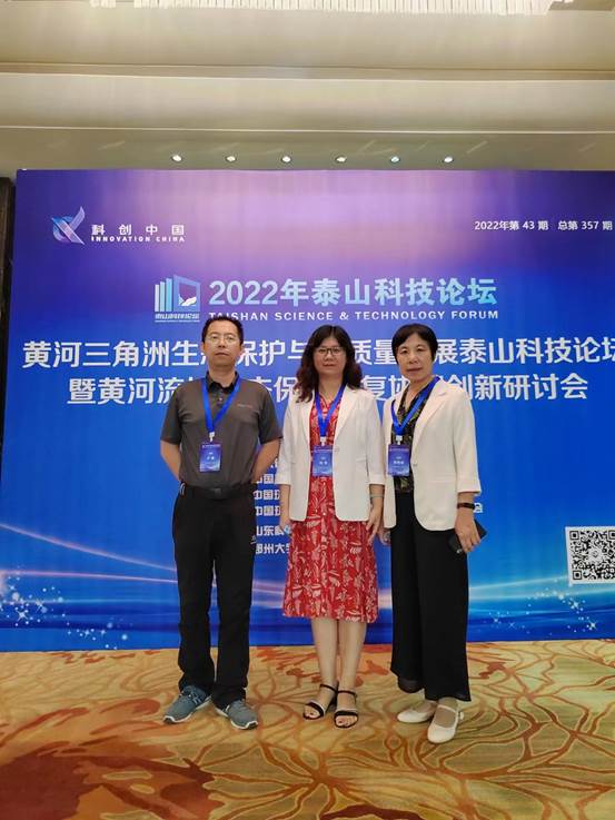 为深入贯彻习近平生态文明思想,落实习近平总书记在深入推动黄河流域生态保护和高质量发展座谈会上的重要讲话精神,交流黄河流域生态保护修复科技创新成果,环境与安全工程系刘芳、张秀霞和卢磊三位老师于2022 年8 月30日参加“黄河三角洲生态保护与高质量发展泰山科技论坛暨黄河流域生态保护修复协同创新研讨会”。