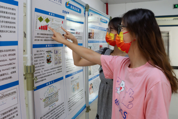 员工参观研究生迎新展板