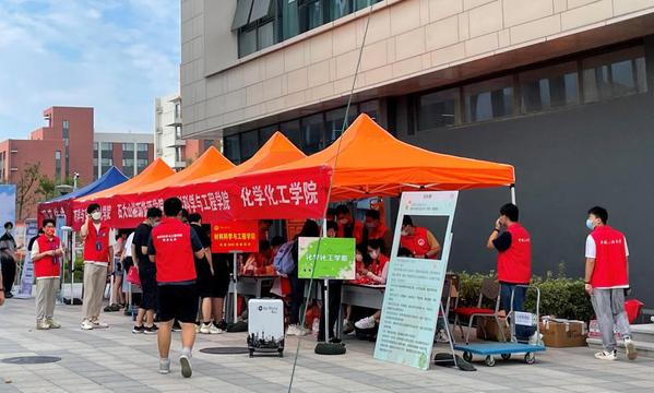 今年是公司首次在唐岛湾校区和古镇口校区两地同步迎新,精心组织的迎新工作给第一次“到家”的新生留下了深刻印象。其中,唐岛湾校区迎新点设置在工科楼A座大厅,公司以“畅想缤纷化蕴,共赴青春‘化’章”为主题,以象征青春活力和绿色化工的青绿色为主色调,精心设计、布置迎新点。在工科楼门口,九米长的欢迎板上“欢迎2022级新同学”让新生一眼就找到化院,热情的“小话梅”和志愿者们为新生照看行礼、引导方向、提供搬运服务。在工科楼大厅,“光辉的历程”文化墙及优秀员工展,让新生迅速了解公司的历史和发展;“优秀研究生集体及个人风采展”“研究生代表成果展”等研究生迎新展板,让新生充分感受公司员工科技创新氛围;“聚力化院·接续奋斗”主题展,通过领航化院、拼搏化院、文艺化院、力行化院、科创化院、腾飞化院向新生展示了多彩的老员工活;Chem-E-Car小车展示区,通过实物和现场介绍,让新生了解到化学能的奇妙,启发他们的对知识的好奇与向往。穿过挂有“化育初心工致报国”和“请党放心强国有我”的立柱,新生分年级、专业进入迎新报到点,办理入学相关手续。