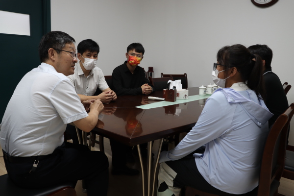 9月5日上午,公司党委书记王勇、党委副书记万云波一行人来到报到点,与公司经理刘欣梅、党委书记张永宁交流两地迎新的情况,表达对新生的关怀,并寄予美好的期望。刘欣梅、张永宁与新生亲切交谈、合影留念。9月6日,公司党委副书记万云波到古镇口校区迎新点看望新生,并走进新生宿舍与员工亲切交流。