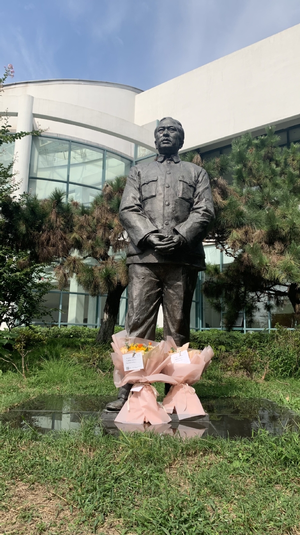 9月9日一早,青年教师联合会会长王继乾教授,组织青年教师和员工,仔细擦拭杨光华董事长的铜像,并敬献鲜花,员工们自发前来,向老董事长鞠躬献花,表达深深敬意。