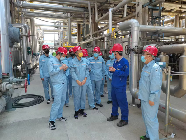 实习期间,公司党委书记张永宁、副经理刘义、党委副书记徐光辉一行赴山东汇丰石化有限公司走访交流。汇丰集团总经理张田心、总工程师王瑞旭与张永宁一行进行座谈,双方就产学研方面的深度融合发展进行了深入交流。张永宁对汇丰集团给化院的大力支持以及实习师生无微不至的关怀表示感谢,期待能与汇丰集团在人才培养、科技服务、成果转化等方面继续深入合作,并希望通过此次实习同学们可以了解汇丰、宣传汇丰、选择汇丰、贡献汇丰。刘义就实习基地、科研合作、毕业设计,徐光辉就员工培养、就业、职业发展等与汇丰集团进行了交流。张永宁一行还看望了正在进行实习的同学和带队老师,并与正在进行生产实习的化学专业2019级同学进行了座谈和交流,认真听取了各个车间实习同学的介绍,详细了解了同学们在住宿饮食、理论学习和现场实践等方面的具体情况,并希望同学们珍惜机会、服从管理、注意安全、满载而归,鼓励同学们做好理论与实践相结合、公司与公司相结合,为今后工作做好知识储备,积累宝贵经验。公司领导专班也分别赴山东京博石油化工有限公司、万华化学集团股份有限公司、中国石化青岛炼化有限公司和滨化集团股份有限公司等企业看望实习的员工和老师。