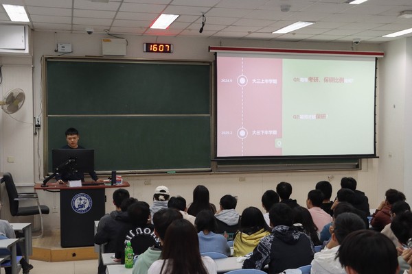 会议伊始,陈浩然首先向新生介绍了大学期间的学习进程。他提到,要始终保持学习放在首位,不能一味的懒散和放纵;要平衡学习和活动之间的关系,分清主次,学会劳逸结合;要尽快适应老员工活,完成自己的角色转换;要培养良好的心态,不要妄自菲薄。要敢于向老师问问题,做到敢问问题、会问问题、多问问题。他还对奖学金和读研等方面要求进行了系统化讲解。随后,李佳康以自己的学习经历为例,建议新生要注意学习的态度和方式,保持原有的干劲努力学习。要经常向学长、学姐、任课老师寻求解决方法,并对本科期间可以参加的学科竞赛进行了阐述。他建议新生要通过不断地学习和努力,提升自己的学习能力、办公能力和社交能力。活动最后,黄嘉青就员工日常生活提出建议,她认为青年员工要积极寻找有意义的志愿服务,不要虚度光阴;要丰富自己的生活,热爱自己的工作,不要过多的积攒压力;要端正心态做好每一件事,不要轻言放弃。