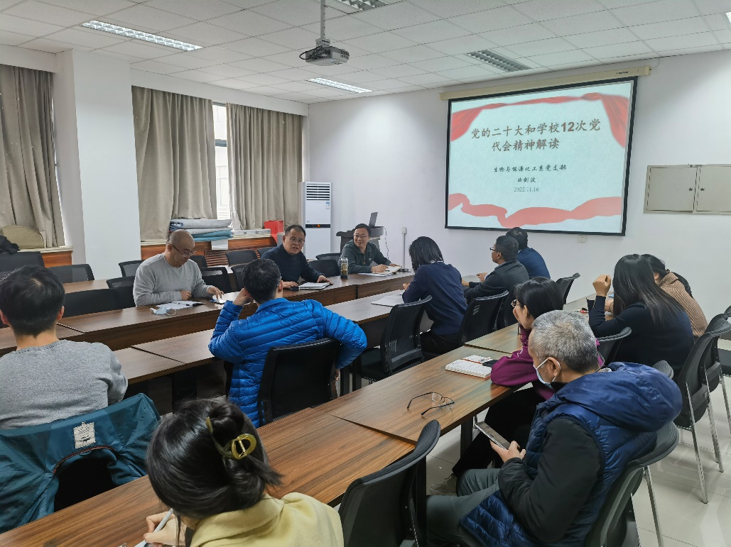 11月16日下午,生物与能源化工系党支部在逸夫楼340党员活动室召开会议,集体学习党的二十大及公司十二大会议精神。会议由党支部书记曲剑波主持,生物与能源化工系教工党支部及研究生党支部的成员参加。