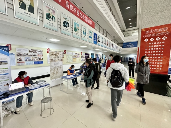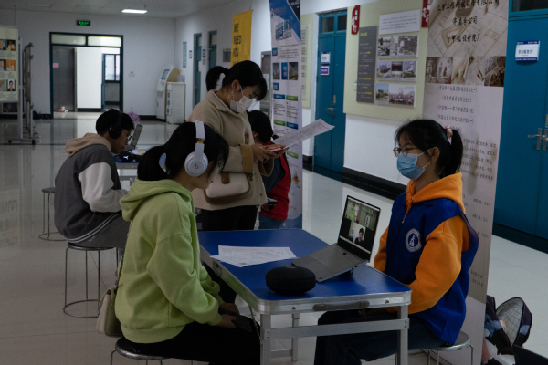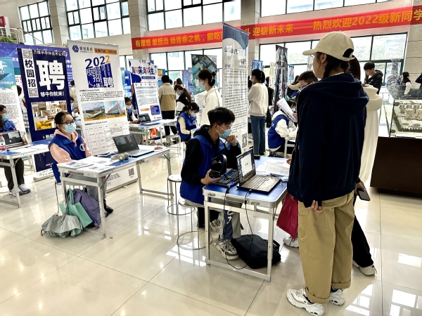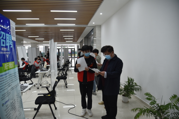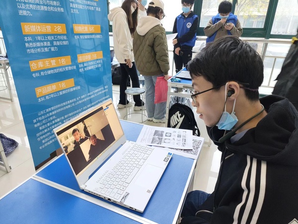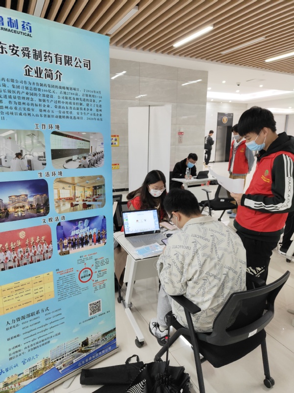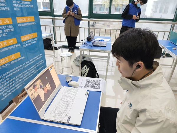 招聘会采取“校园线下+用人单位线上”的模式,志愿者帮助企业在校园内设置展位,员工校内现场通过公用笔记本电脑与企业进行视频连线,了解企业与岗位相关信息,企业对员工的相关问题进行答疑,也可对员工进行现场面试。
